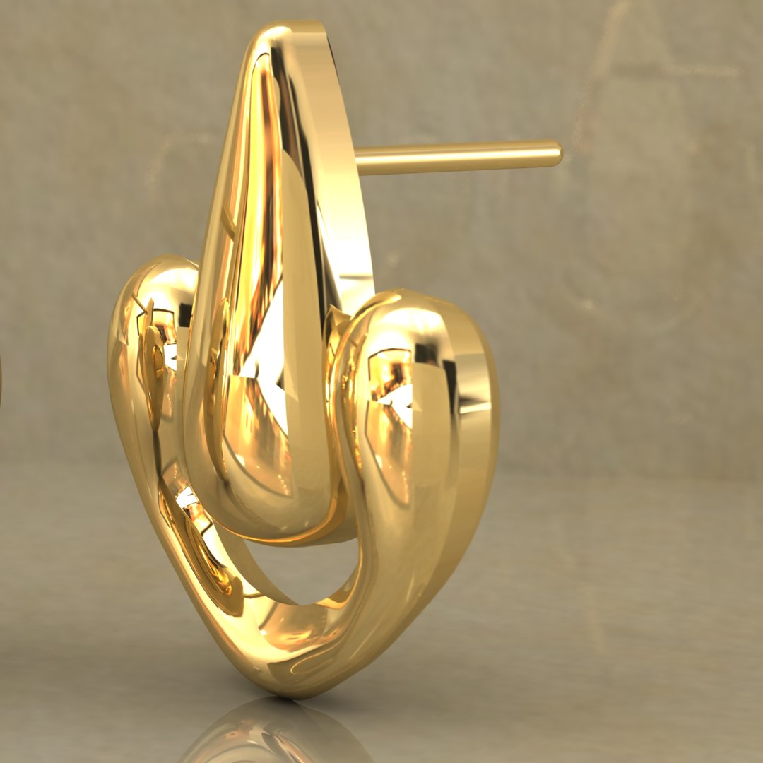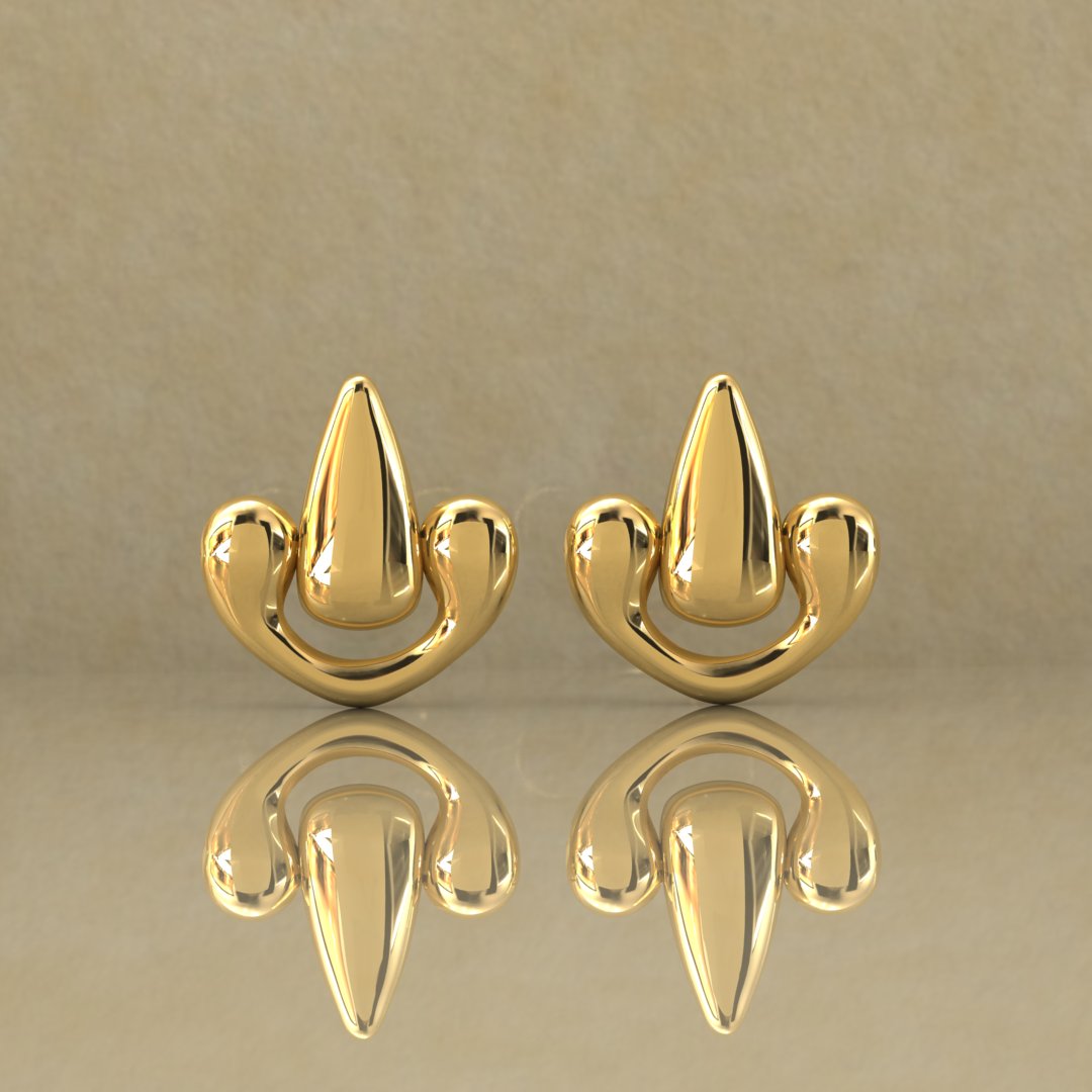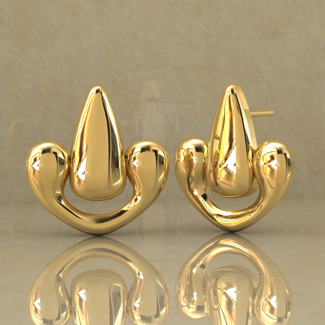 - Design: The earrings showcase a modern interpretation of classic forms with smooth curves and a reflective finish, offering a bold yet elegant aesthetic.