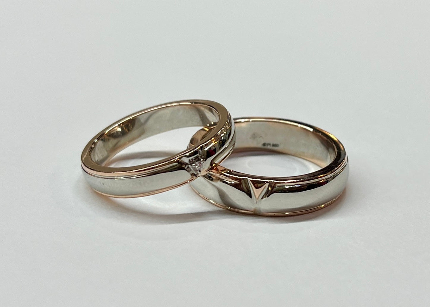 - Diamond Accent (Women’s Band): A delicate round-cut diamond is set at the center of the women's band, adding a subtle yet stunning sparkle.
