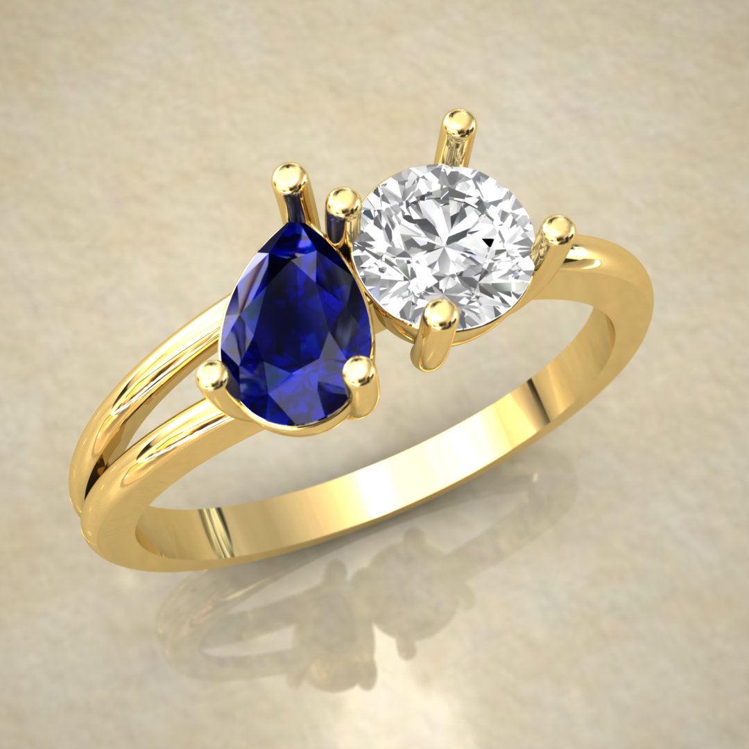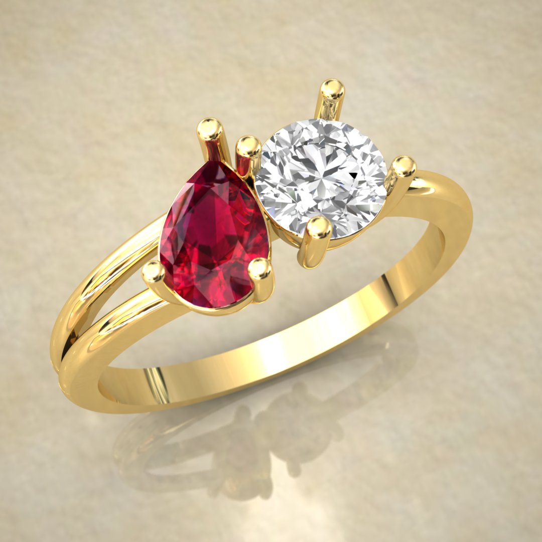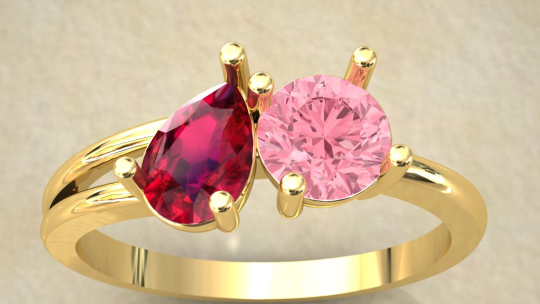- Dual Stone Setting: Features a captivating pairing of a pear-cut gemstone and a brilliant round-cut stone for a harmonious design.
